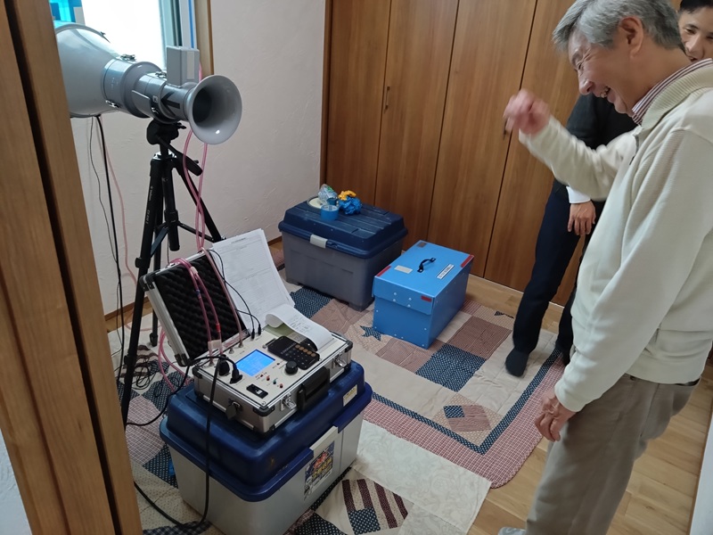 お客さまに引き渡し前に完成気密測定を行います