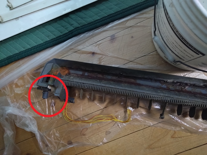 クリーニングを出来るようにエアコンをバラしてみると排水受けの所のホコリが溜まっていました