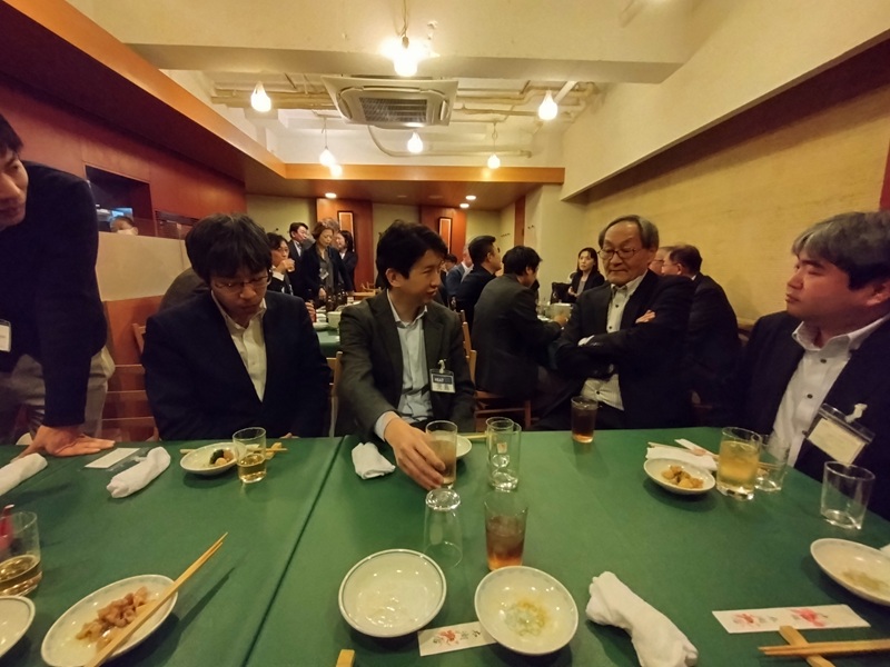 近くで大人数の懇親会が出来る場所が無かったので狭いお店が会場です