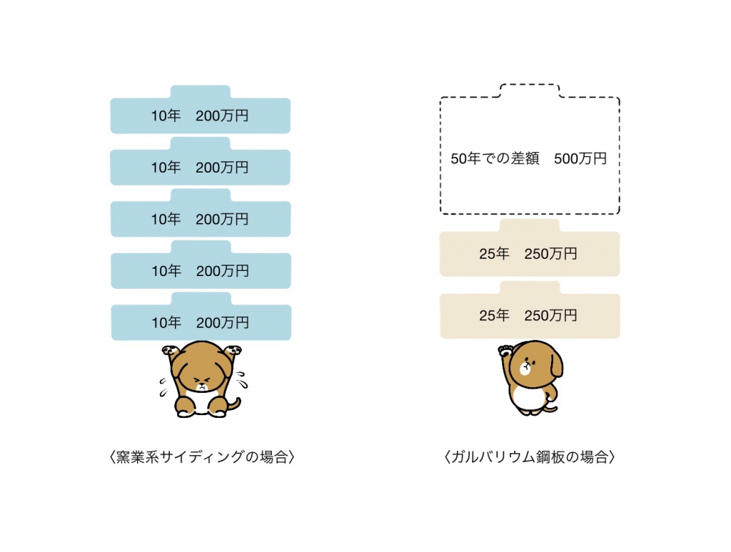 ガルバリウム鋼板は25年でだいたい250万円くらいのメンテナンス費用。