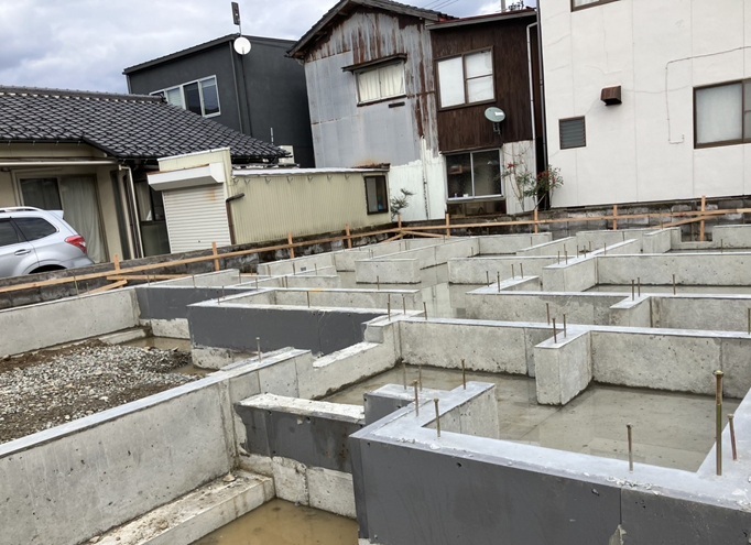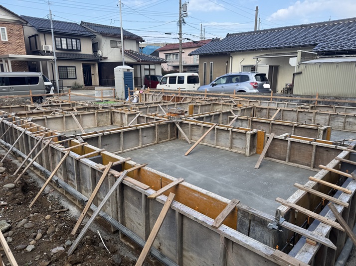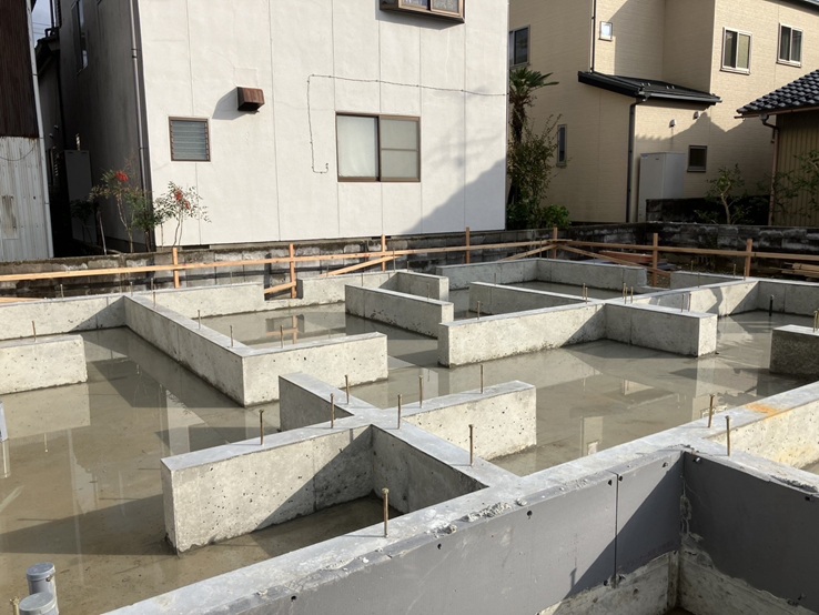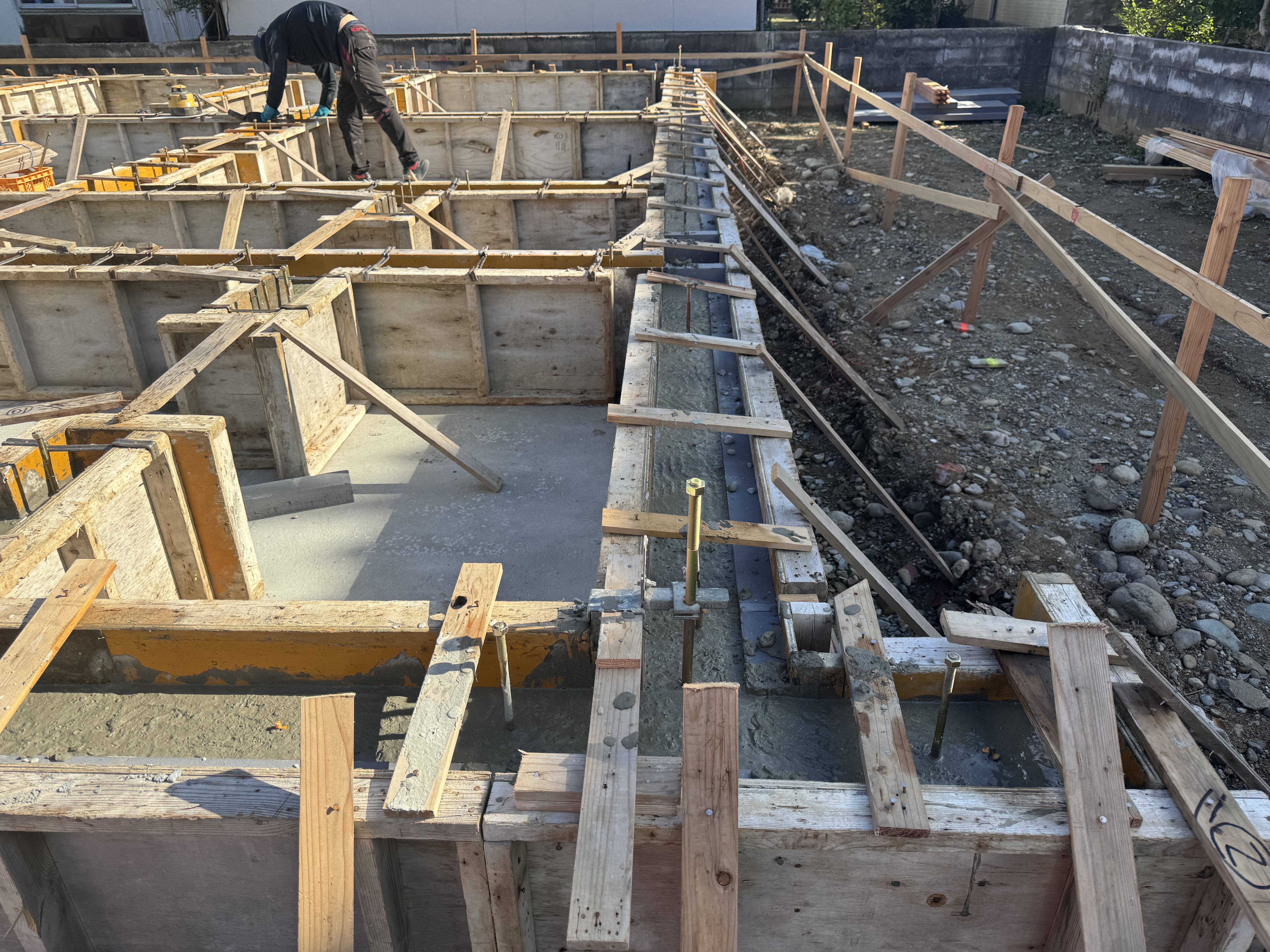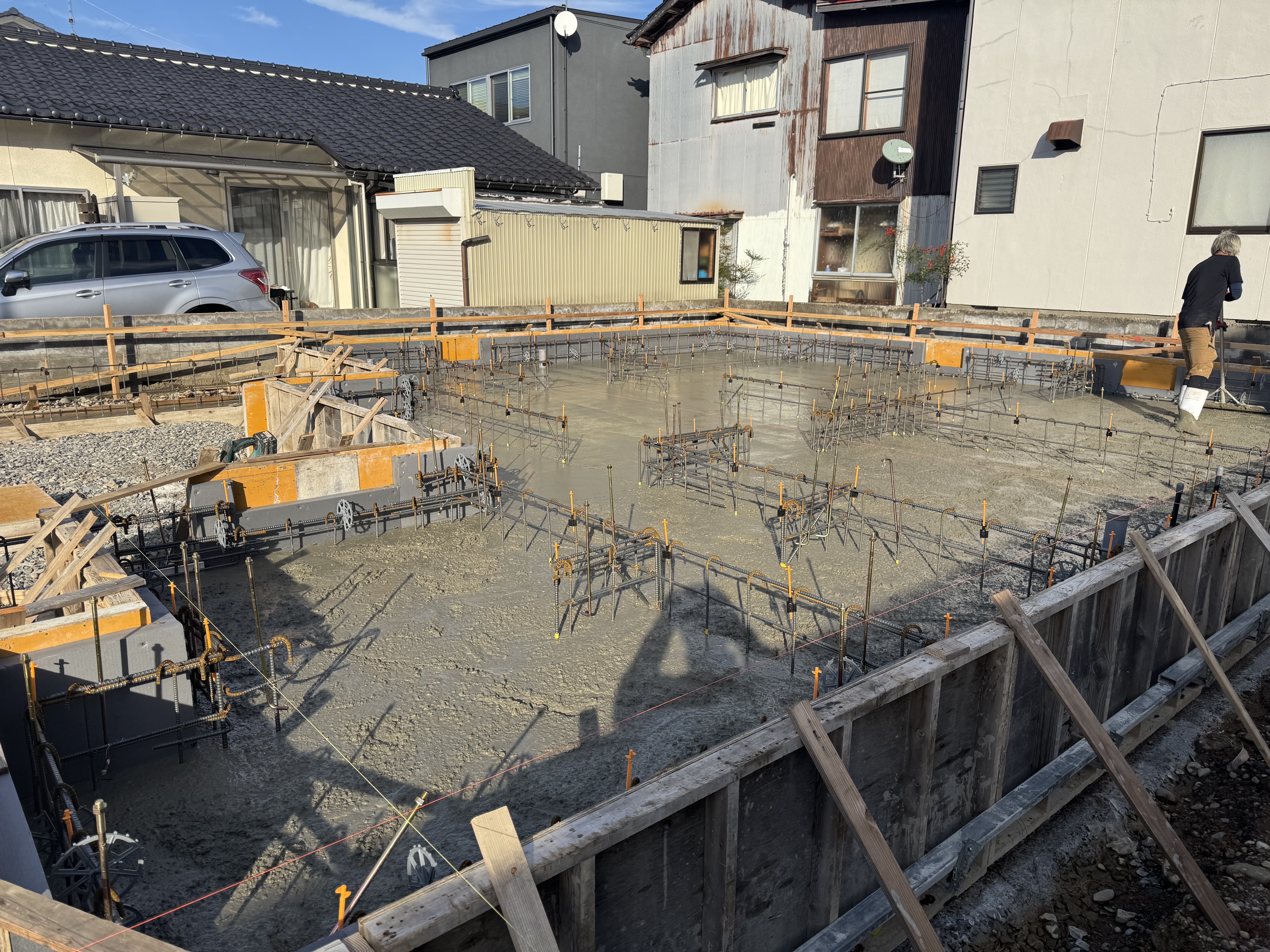 スラブコンクリート、立ち上がりコンクリートを打設する事で、