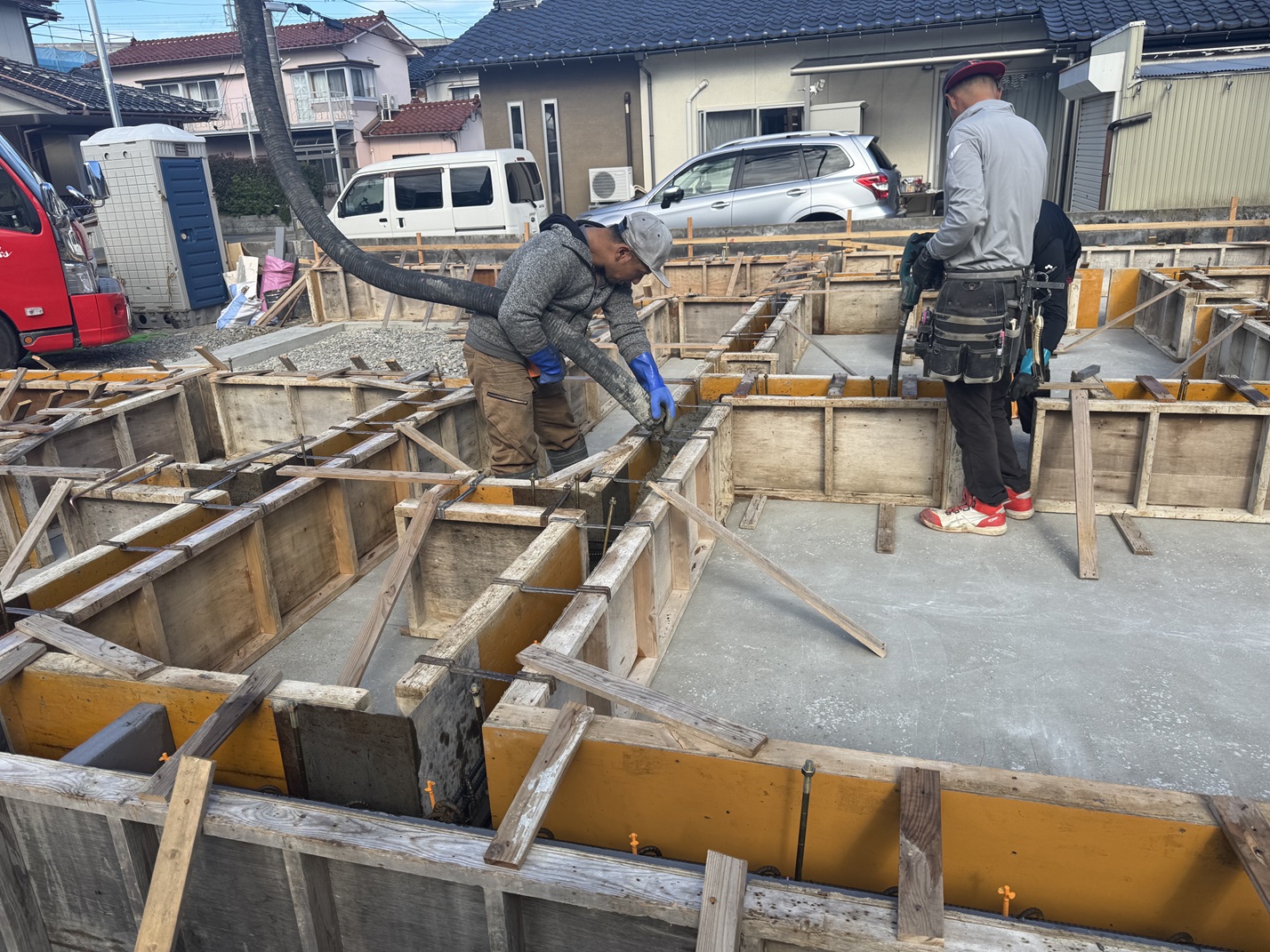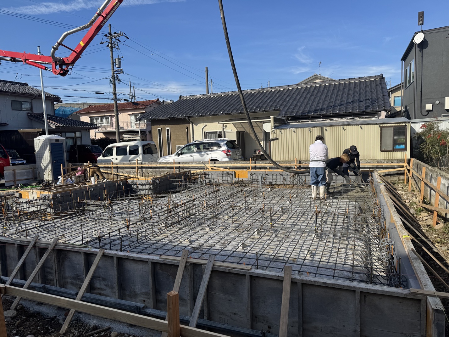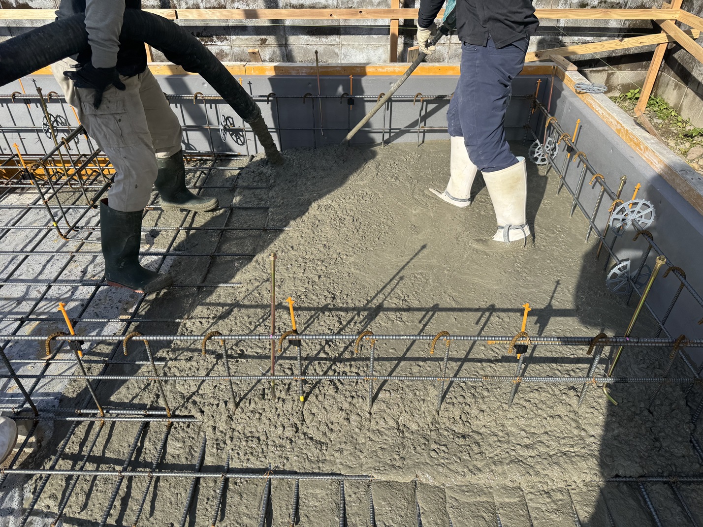 スラブコンクリート(耐圧コンクリート)打設の様子です
