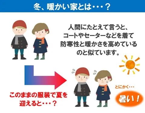 冬の寒さを防ぐために「高気密・高断熱」の家が増えていますが、実はそれだけだと「夏に熱がこもって暑すぎる…」というお悩みが発生することがあります。