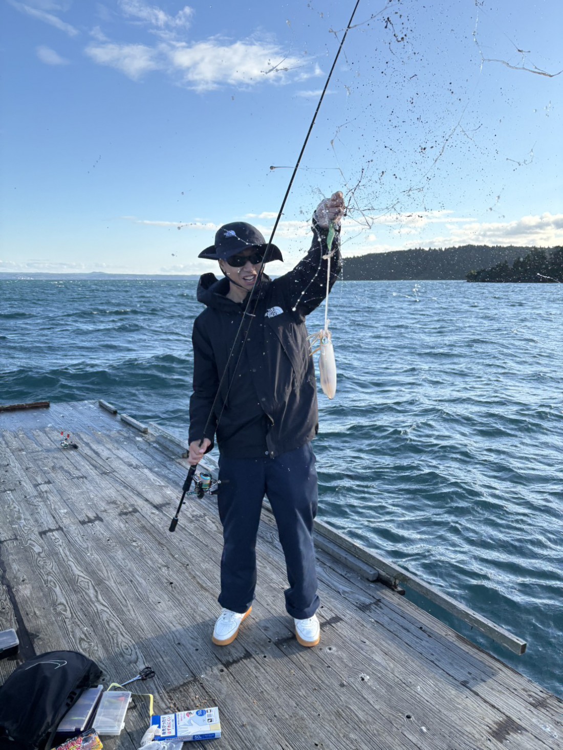 イカ釣れました。自分が釣ったわけではないですが風があって波もある激渋の中の一杯だったので初めてイカを見るレベルで喜びました。刺身にして食べたそうです。