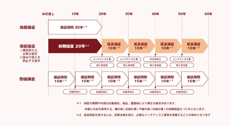 そして定期点検と必要なメンテナンスを重ねることで、最長60年まで保証を延長することが可能になりました。