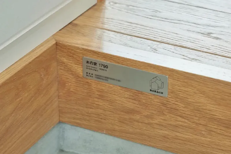 無印良品の家では、すべての住まいにシリアルナンバー入りのプレートを取り付けています。