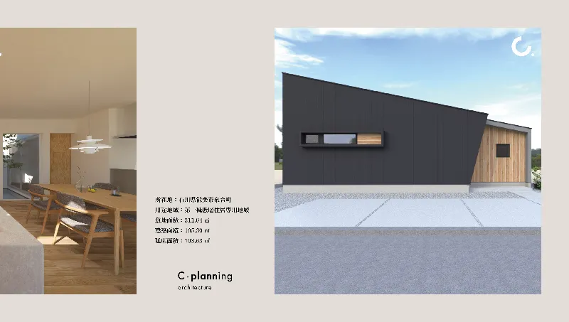 地形は小高い丘になっており、九谷焼陶芸など伝統工芸の産地としての歴史的背景と文化的な位置づけがある地域の一角です。大きな敷地を活かしたのびやかな平屋を計画しました。中心に中庭を設けることにより、平面的な動線の中でも光を感じることができるよう計画しました。22.75帖のLDKからは大きな外庭と囲まれた中庭。2つの庭が豊かな暮らしをもたらします。