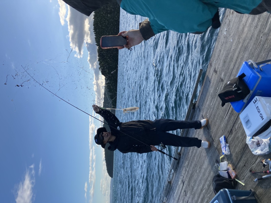 同じく現場監督の土上さんはアオリイカを釣っていました