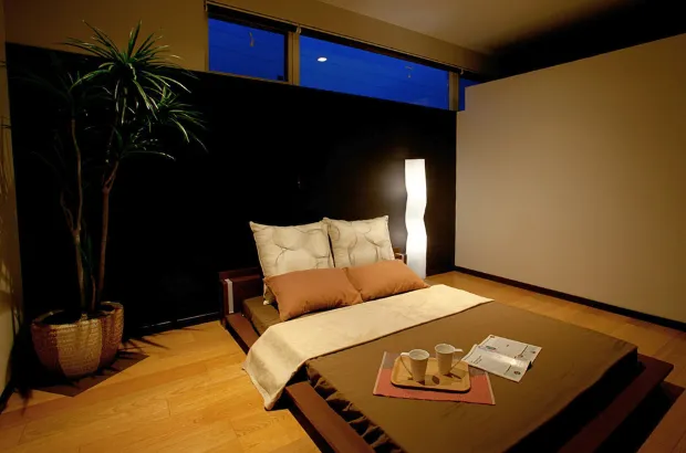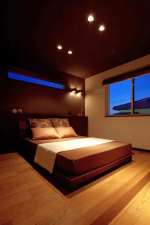 ベッドの高さを抑え、視線を低く保つことで、空間に安定感と広がりが生まれます。