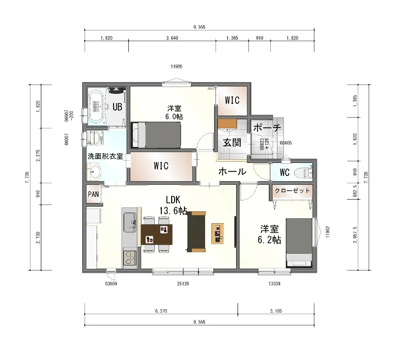 ✔ ちょうどいい広さのLDK(13.6帖)