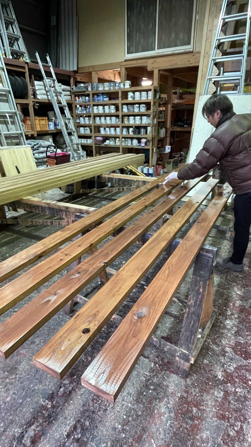 倉庫で塗装中の大久保さんを発見!(^^)!