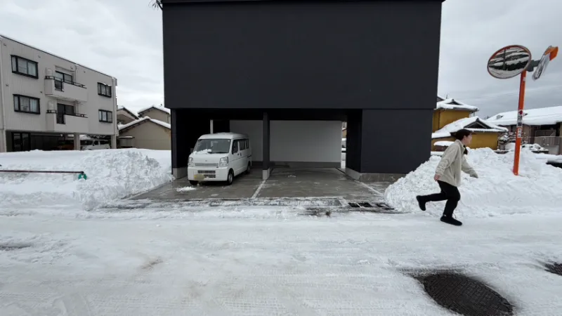 糸田新町モデルも雪で駐車場が塞がれていたため、雪かき部隊緊急出動です('ω')ノ