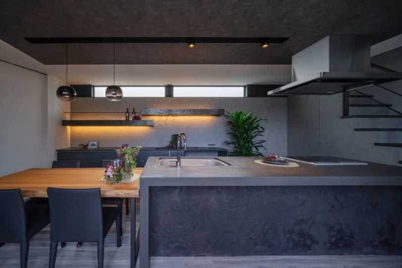 キッチンまわりを間接照明にすることで一気に都会的なムードが出るのでオススメです♪
