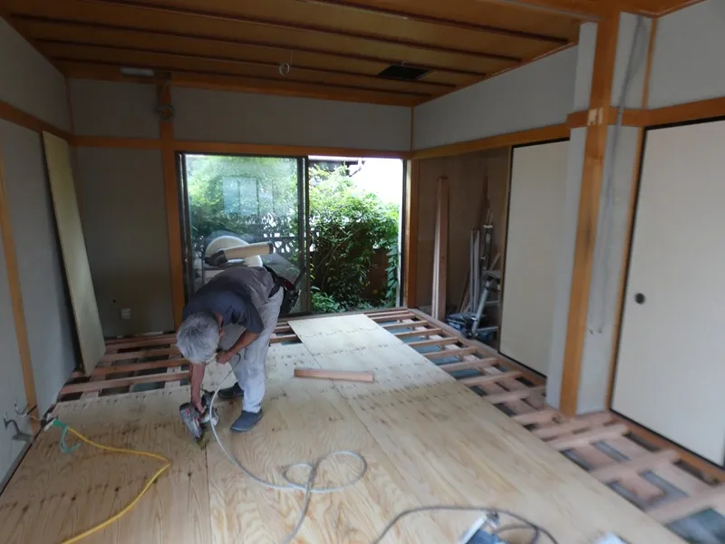 住み方が変わったので2部屋を大きな1部屋に合体リフォーム工事です。 広い部屋は色々使えますので便利になりました。