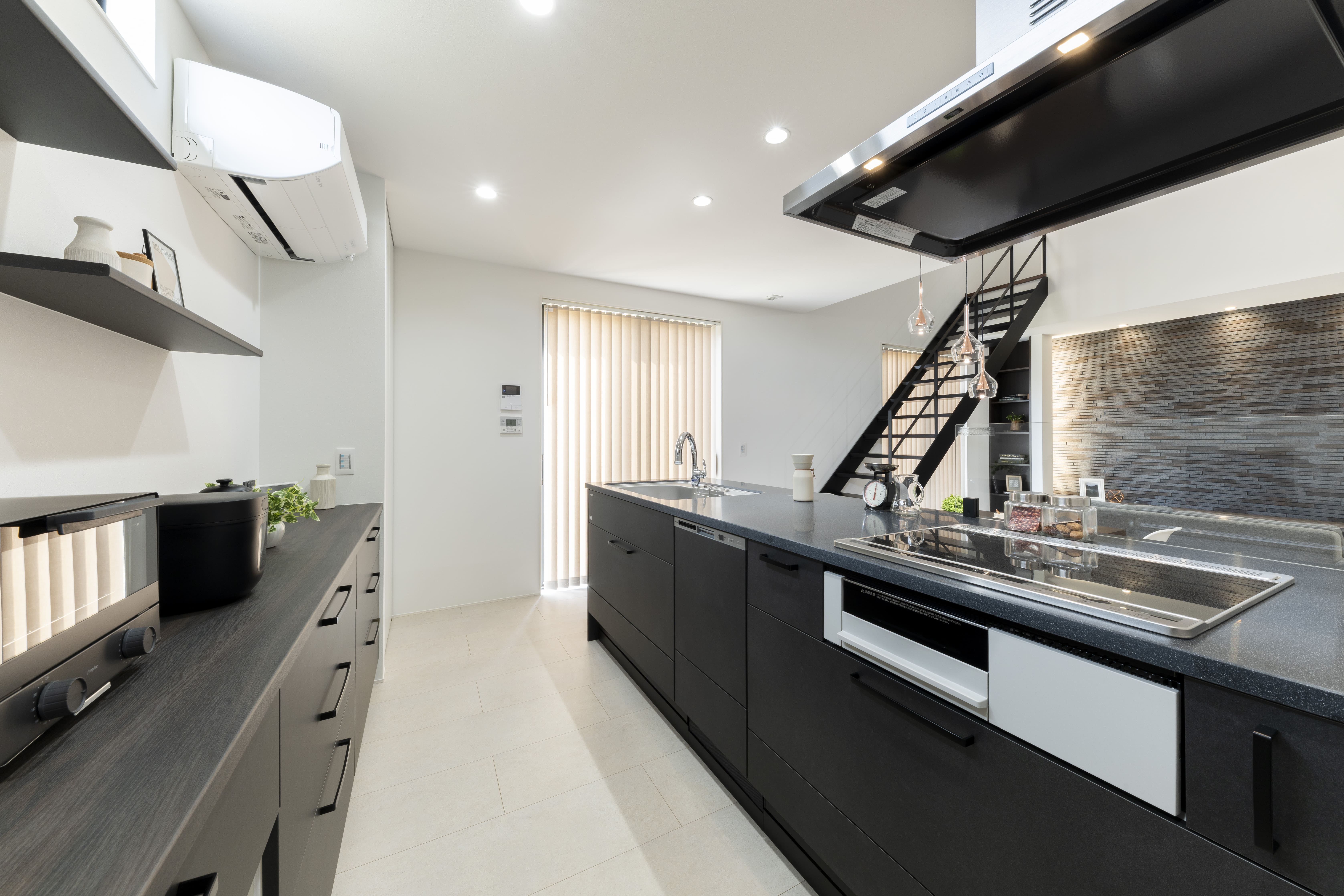 キッチン前のこだわり配置。 ex.料理をしながら家族と会話 一緒に並んでお勉強 大人時間の家呑みスペース