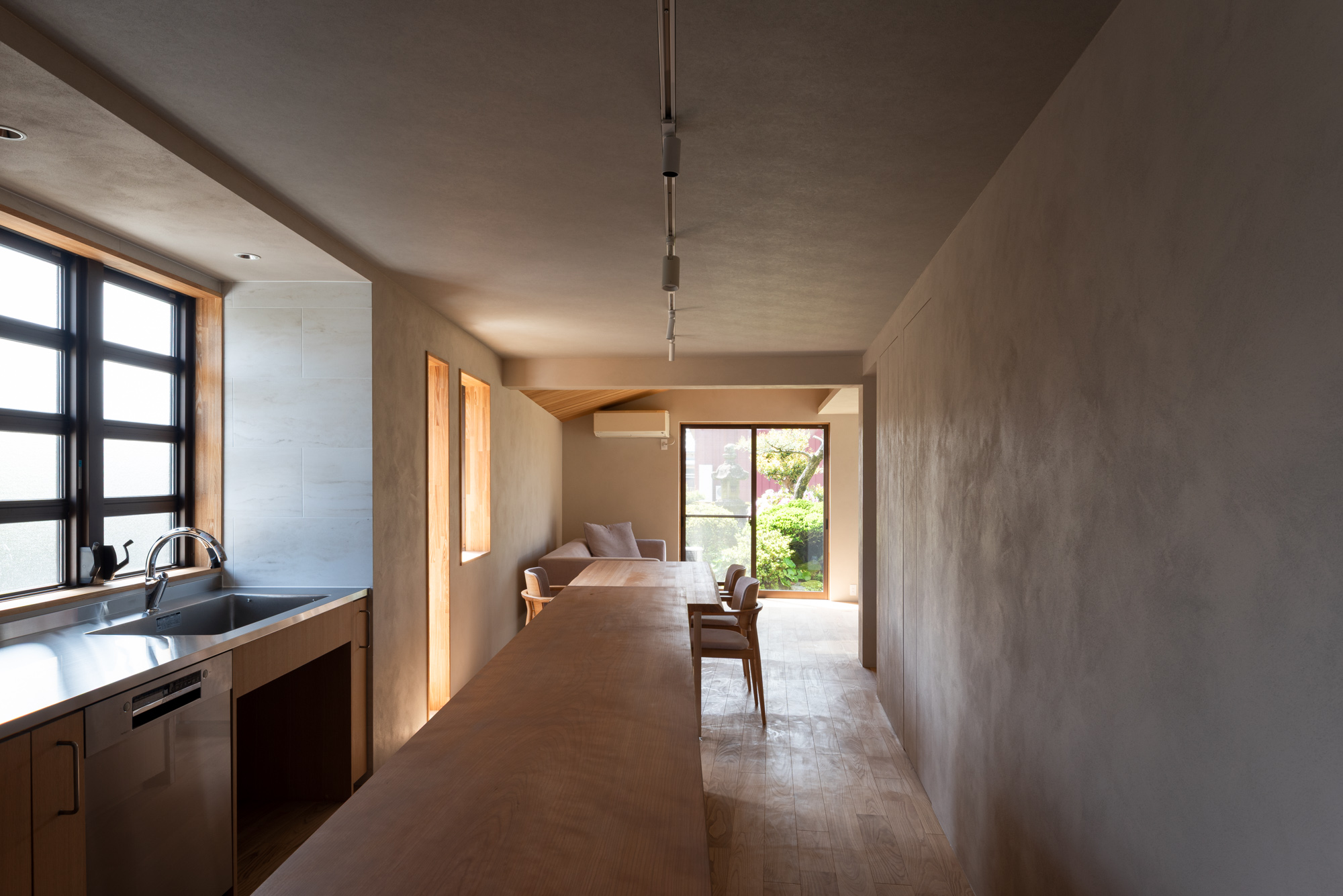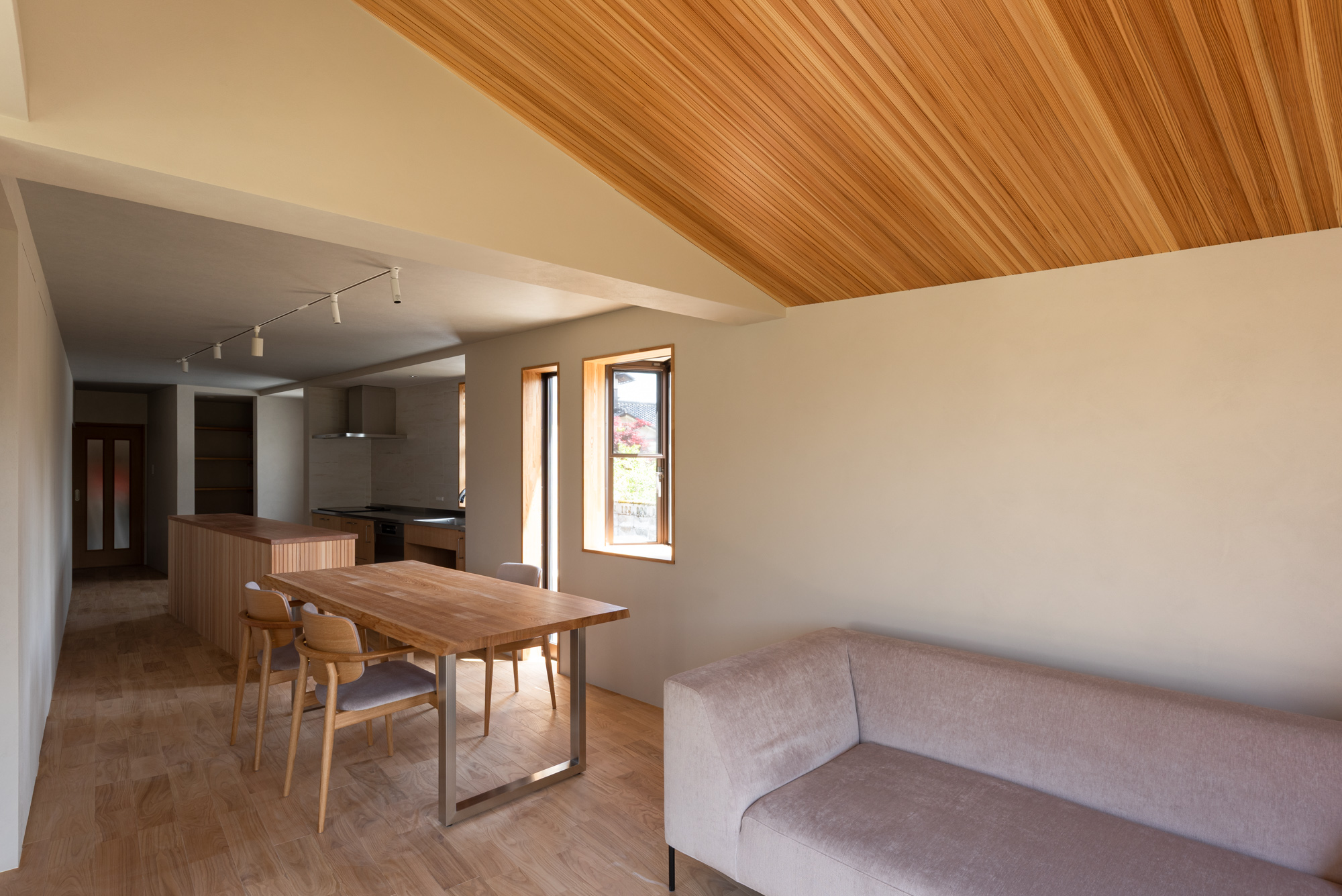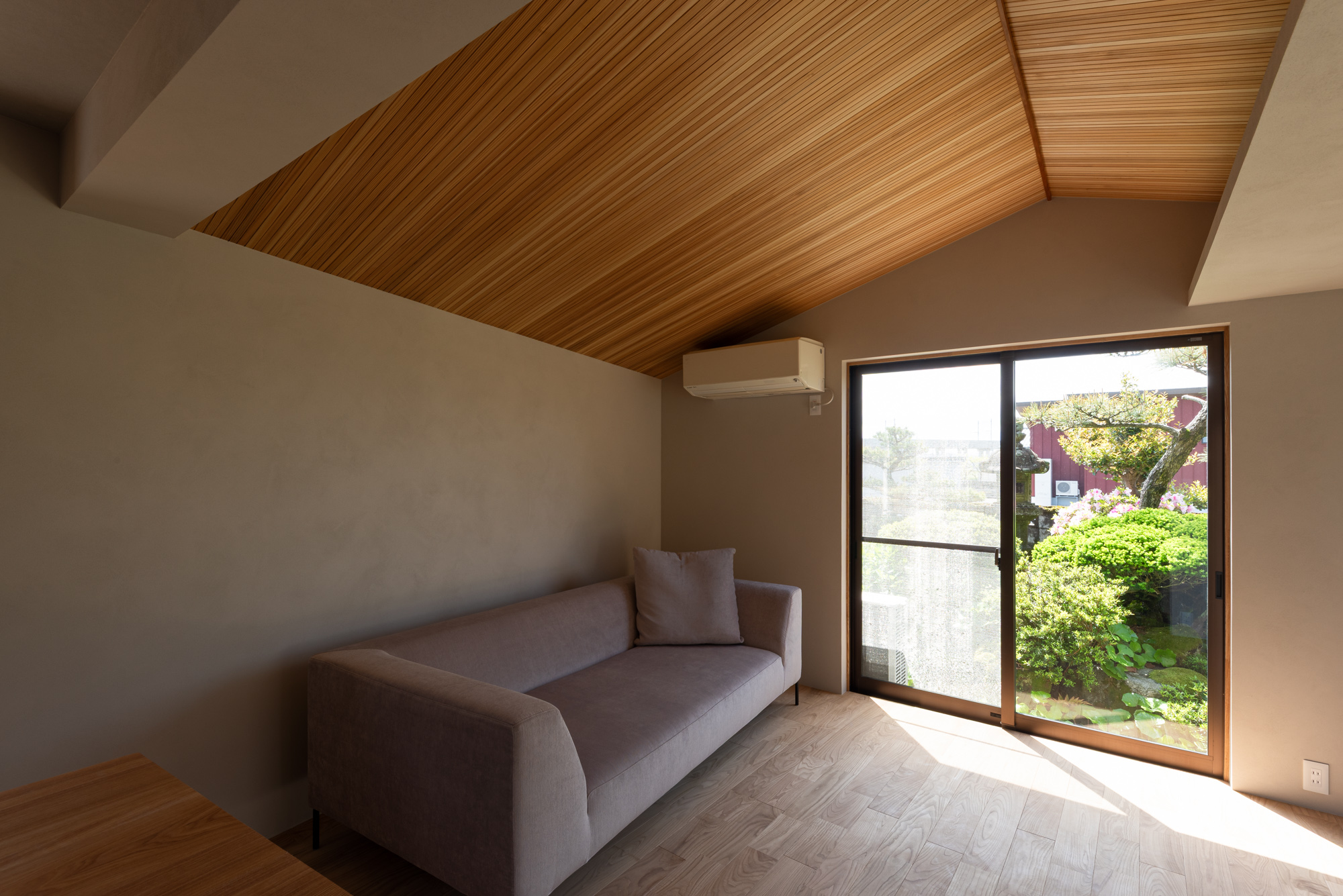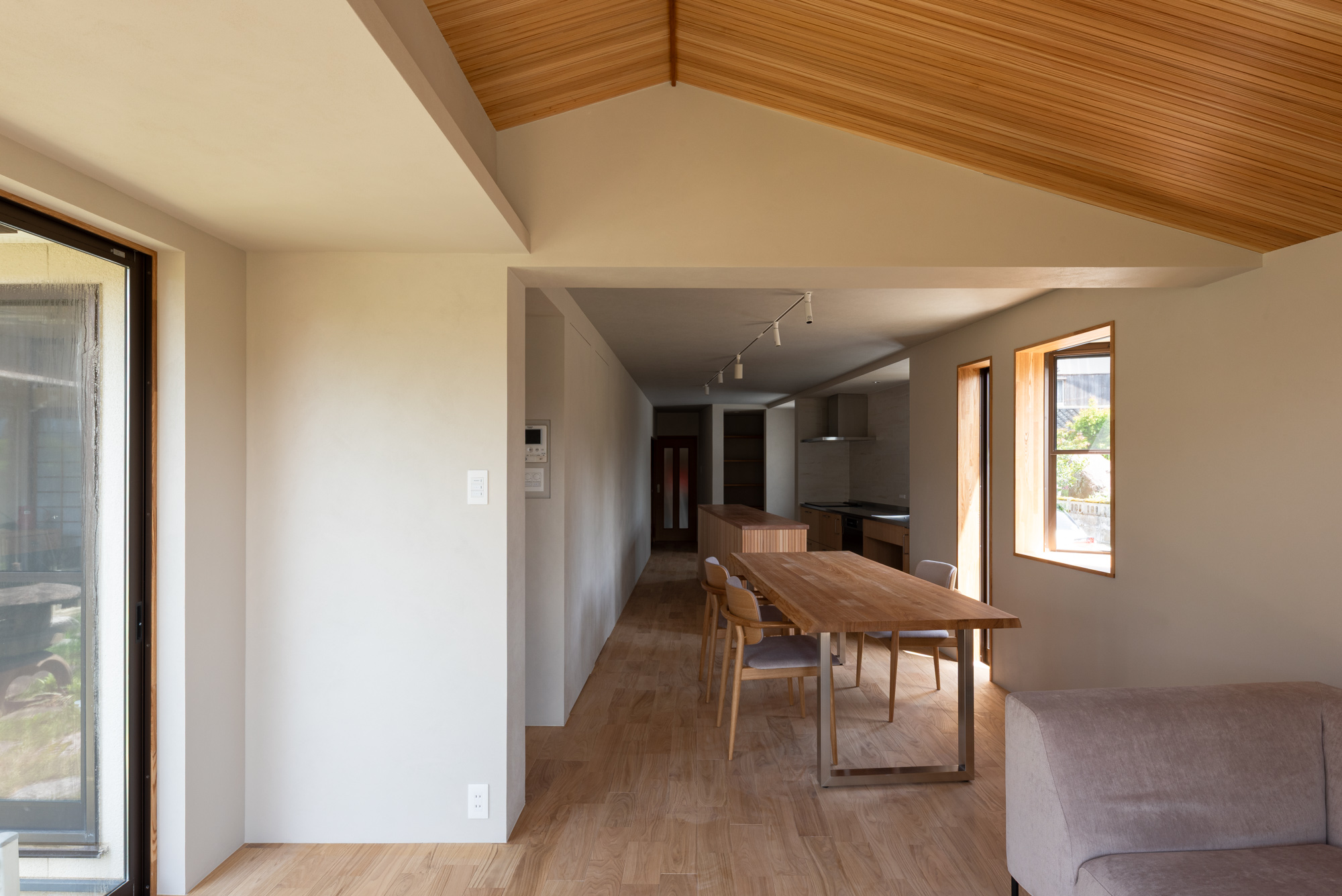 南側の庭へ視線が抜けるように間取りを変更し、開放的なワンルームに。