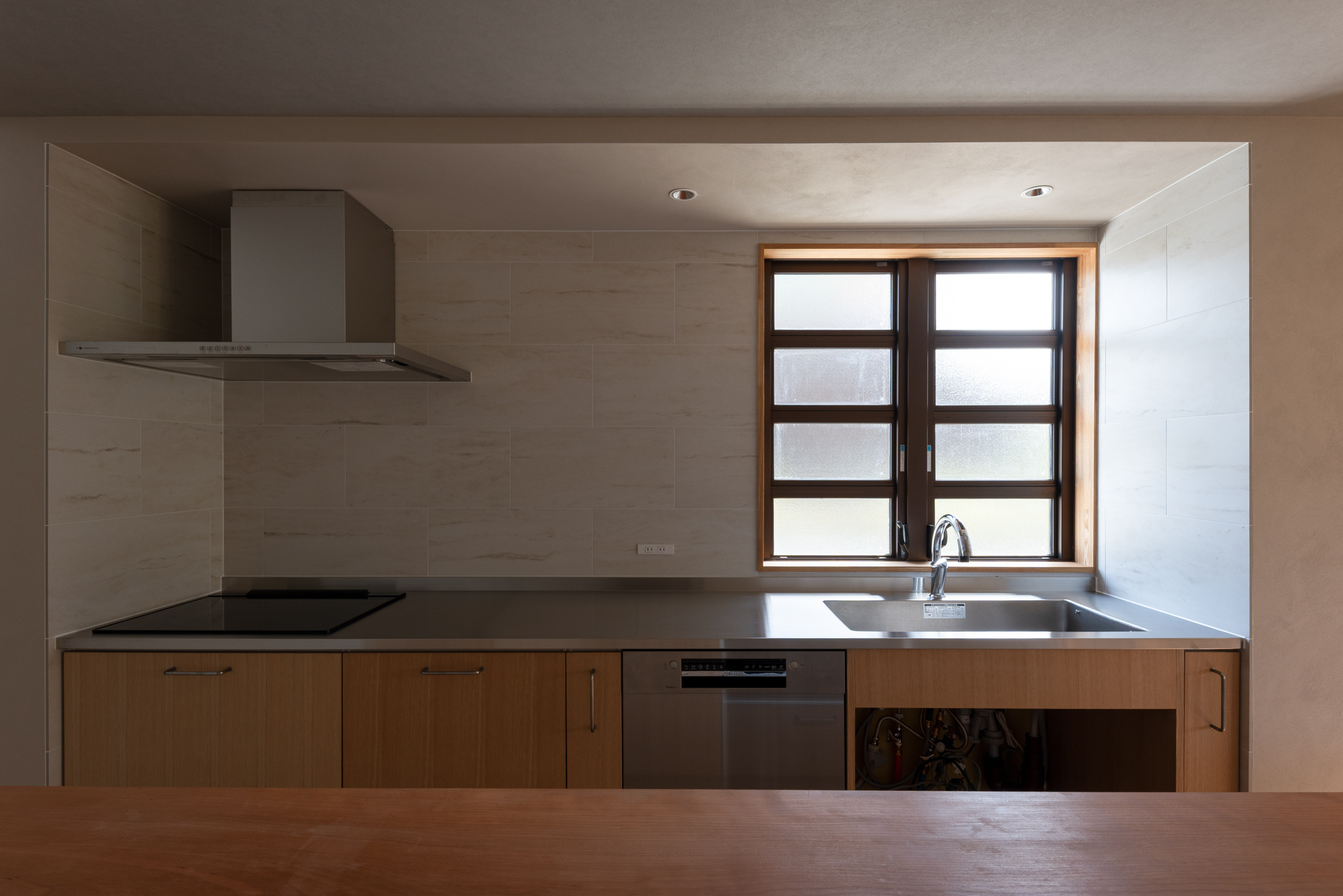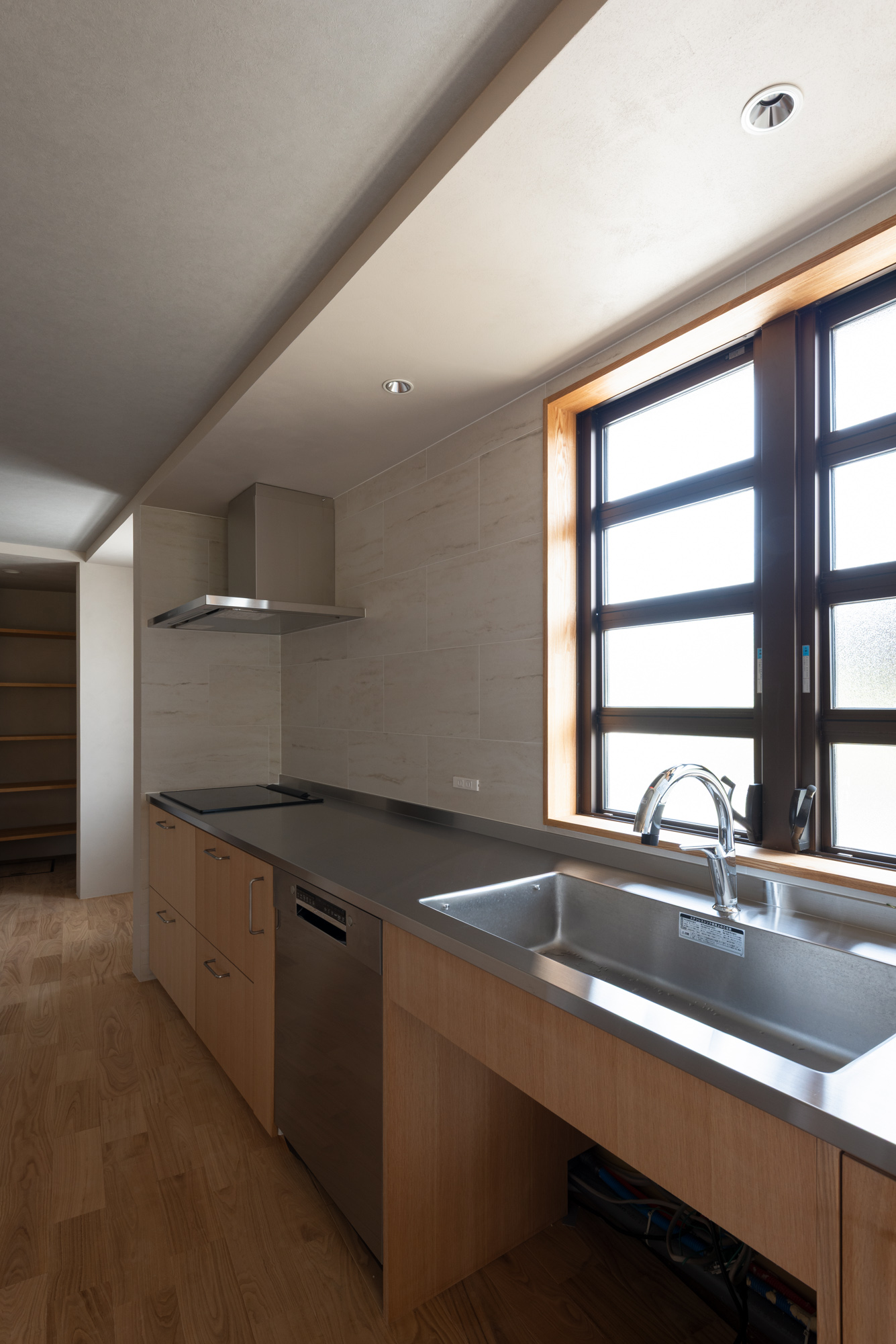 リノベーションの場合は特に、既製品ではなく造作で設えるほうが収まりよく、コスパも良いことがあります。 収納は部分的は既製ユニットを使い、天板をステンレスメーカーに直接オーダー。コストを抑えながら広く使いやすい設計を実現しました。