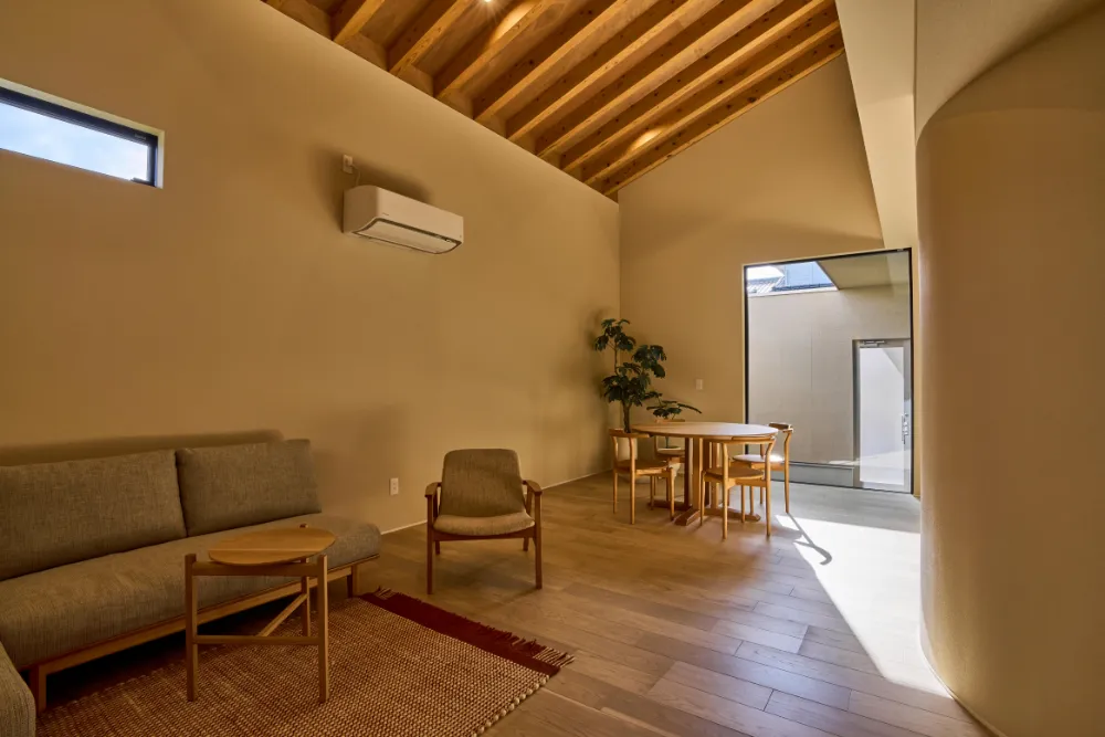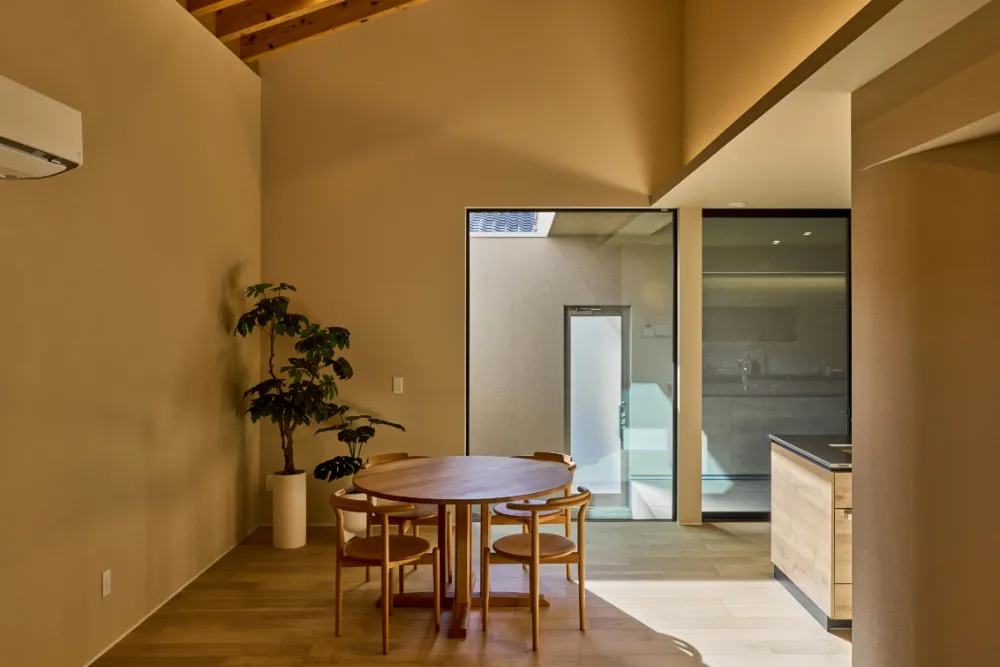 朝霧台の家 - 40坪(自転車小屋含む)の木造平屋建 リビングの壁面には 照明ボックスを設け、 仕上げ材をタイル貼りとしました。 壁面に、段を作る事で 奥行が生まれ 空間をより、立体的に見せる事が 可能となります。 ちょっとした一手間で 空間の見え方が変わる、 細かい細部までこだわれるのも 注文住宅のいい所ですね。 - UA:0.13 W/(㎡・K) Q値:1.04 W/(㎡・K) C値:0.27 cm²/㎡ BEI:0.58 長期優良認定住宅 GX指向型住宅