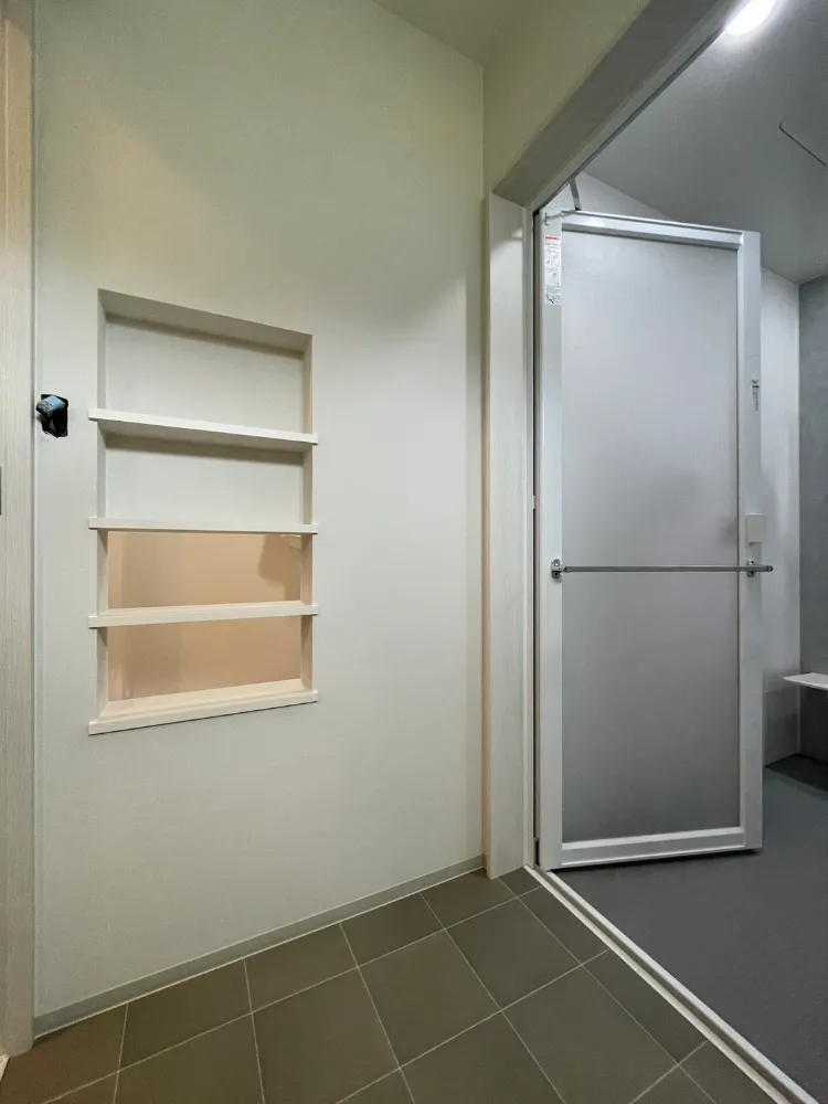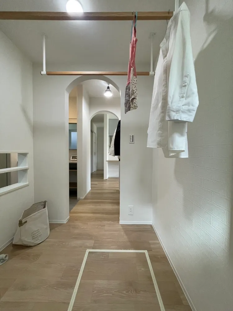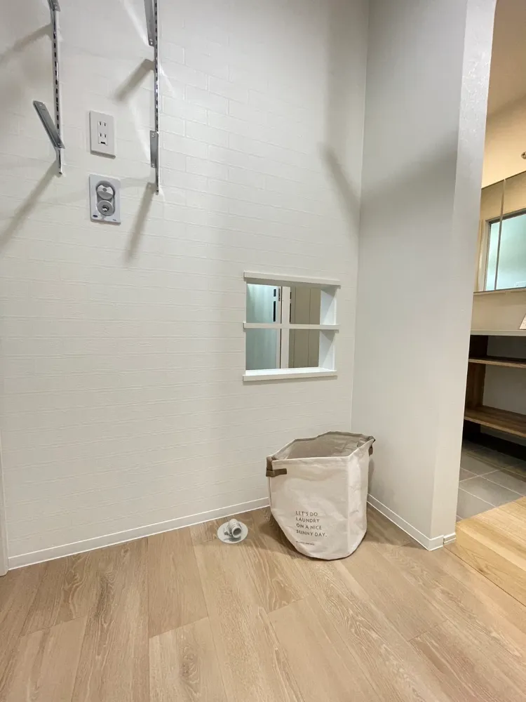 家事ラクアイデア!脱衣場から洗濯物をサンルームへぽいっと入れるニッチの穴。