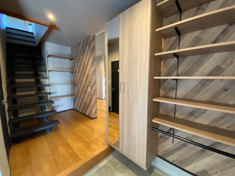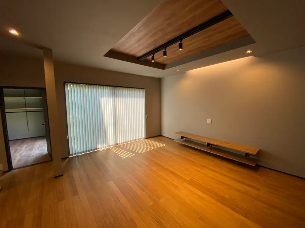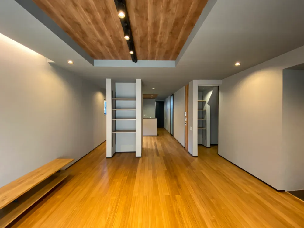 深みのあるネイビーの外観が、街並みに凛とした存在感を放ちます。 リビングは大きな窓から光を取り込み、外とのつながりを感じながらも、プライバシーを守る設計に。 キッチンに立てば、リビングで遊ぶお子さまの様子が目に入る、見守れる安心が毎日の子育てにゆとりを生みます。 家事動線をコンパクトにまとめることで家族と過ごす時間をしっかり確保できます。