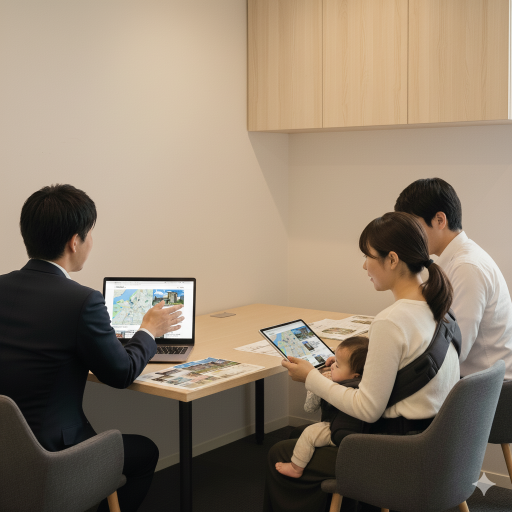 得られるメリット(情報の整理): 価格や広さだけでなく、「お子様の学区」「水害・土砂災害のリスク」「地盤の強さの目安」といった、暮らし始めてから重要になる情報を地図上で色分けして表示します。情報が整理されることで、「わが家にとって何が大切か」が明確になり、判断に迷わなくなります。