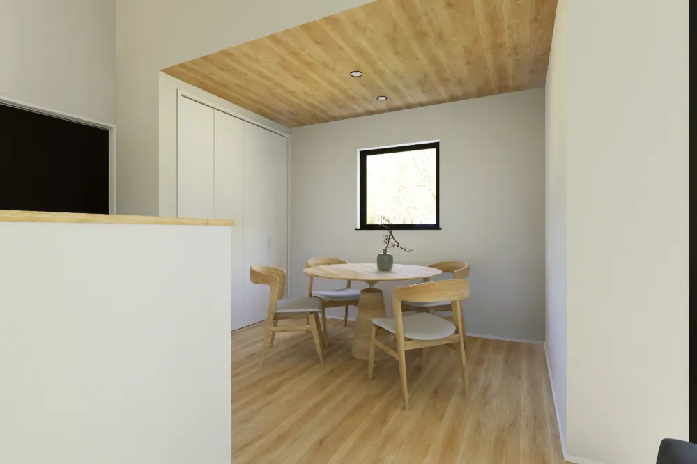 天井を木目にしたことで一つの空間としてアクセントとなっています。