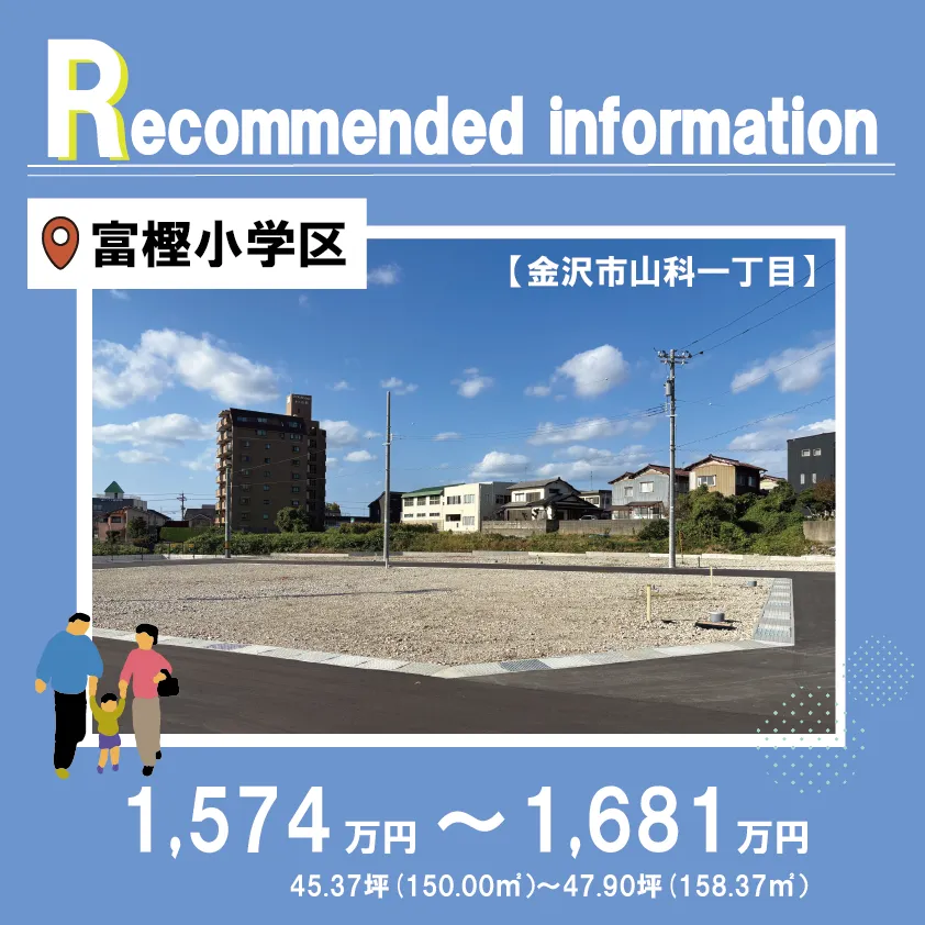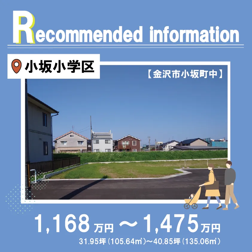 金沢市小坂町中で2区画販売中! お買い物施設が充実しており、小学校・中学校とも徒歩10分圏内!