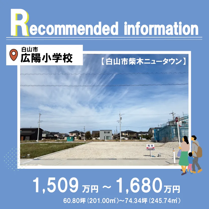 白山市柴木ニュータウンにて4区画販売中! 金沢市にも野々市市にも近い、閑静な住宅街です。