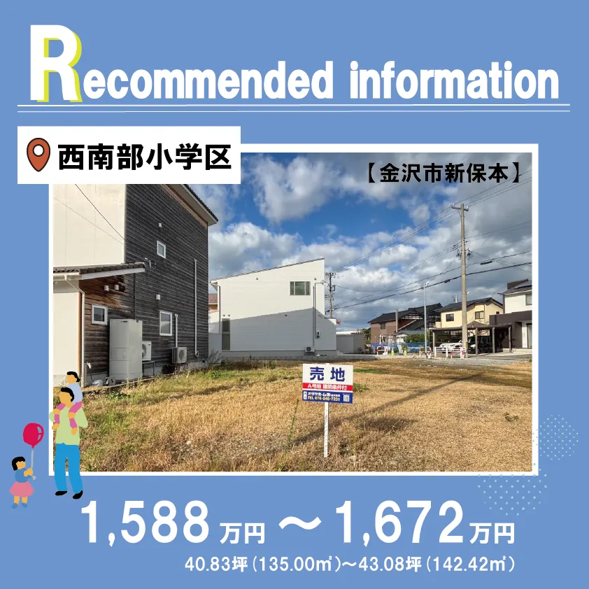 金沢市新保本で2区画販売中! 徒歩圏内にお買い物施設が充実!8号線へもすぐ!