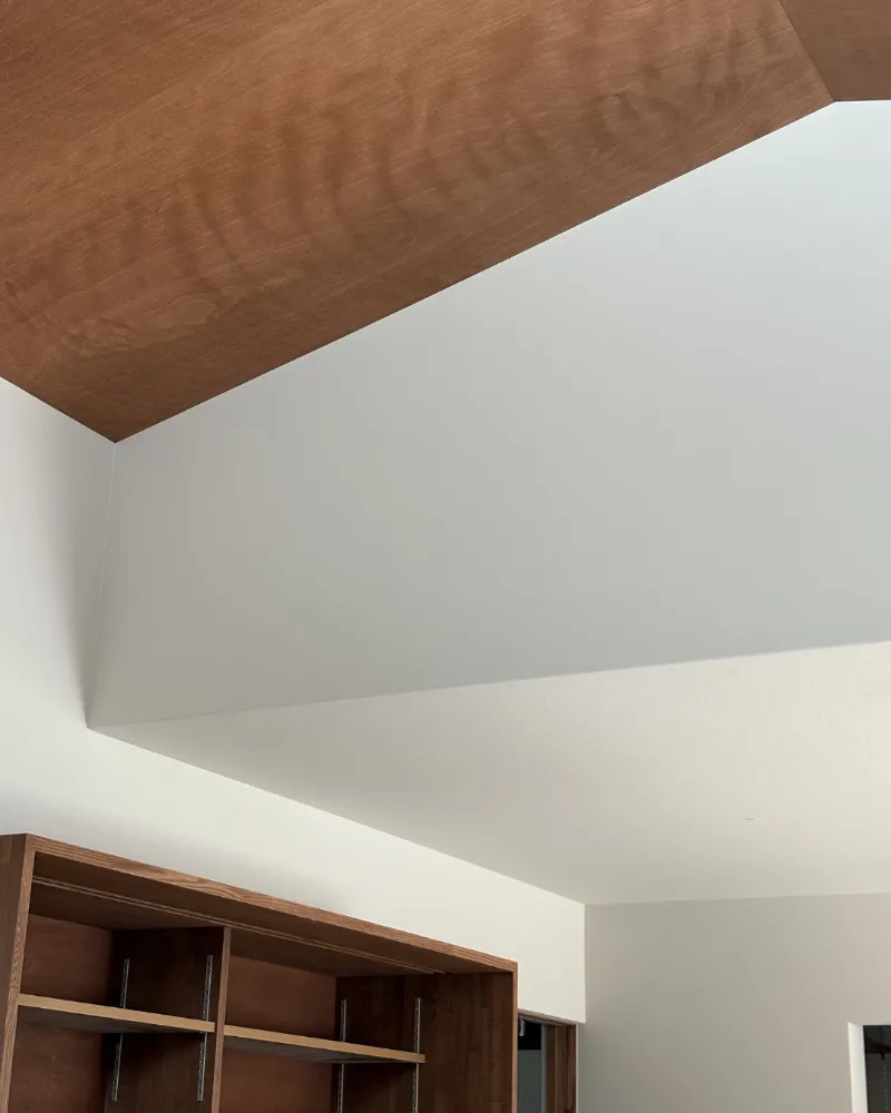 平屋というコンパクトな間取りであっても、天井の高さを出すことで、圧迫感がなく開放的な空間になりました。