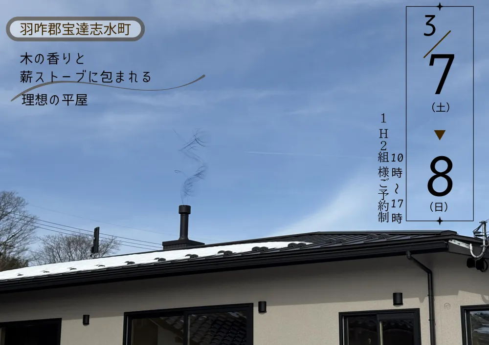 【羽咋郡宝達清水町】 木の香りと 薪ストーブに包まれる 理想の平屋 新築完成見学会