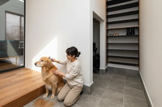 広い土間スペースではブラッシングも◎