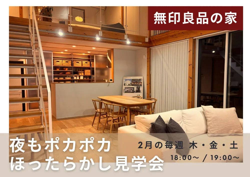 【2月】夜もぽかぽか高気密・高断熱の開放的な家ーほったらかし見学会ー【無印良品の家】