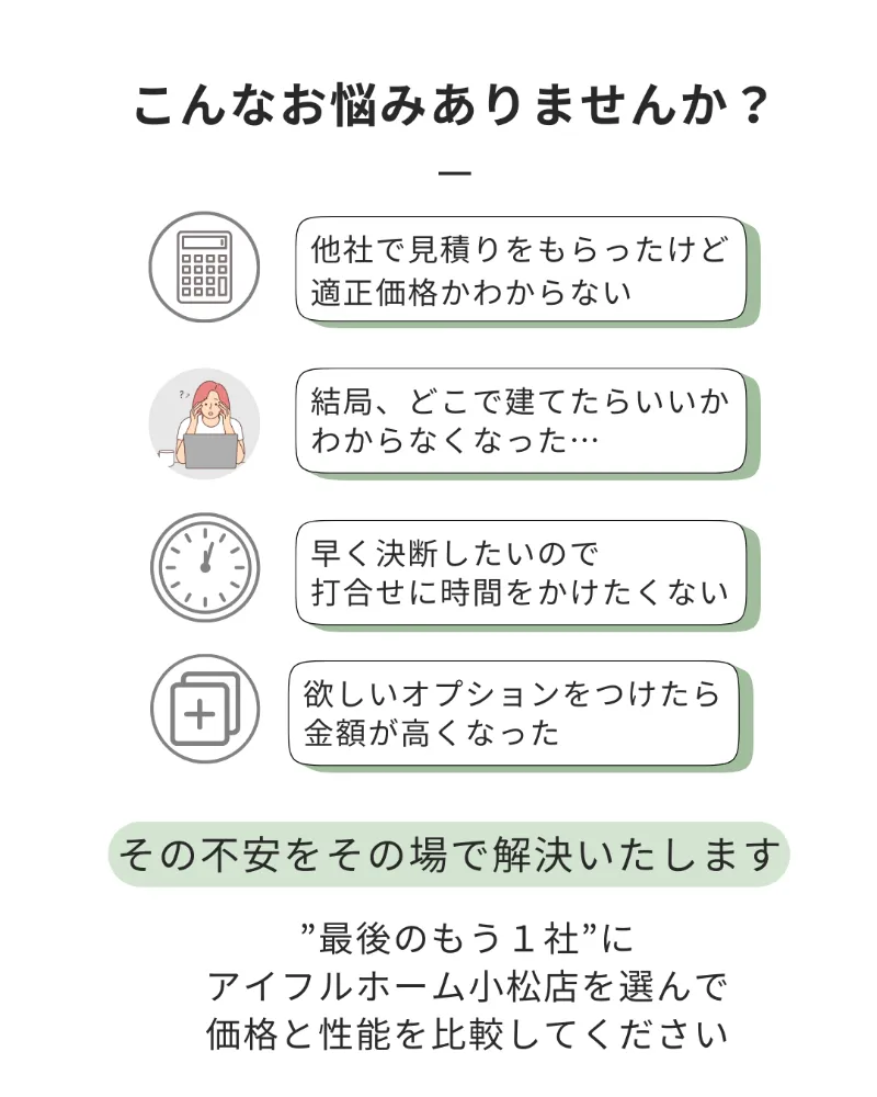 “最後のもう一社”にアイフルホーム小松店を選んで価格と性能を比較してください