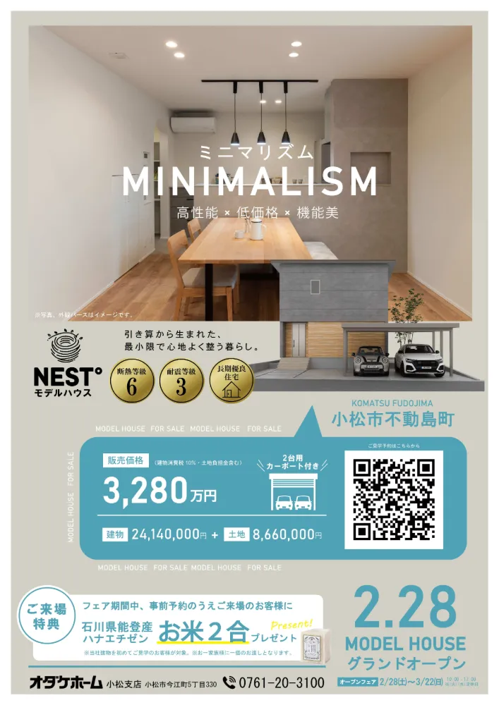 【NEW GRAND OPEN!】小松市不動島モデル【ミニマリズムな家】
