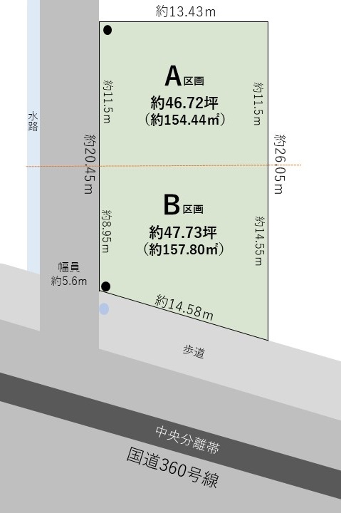 西側:約8.9m /幅員約5.6m(舗装道路)南側:約14.5m /幅員約30.7m(舗装道路)